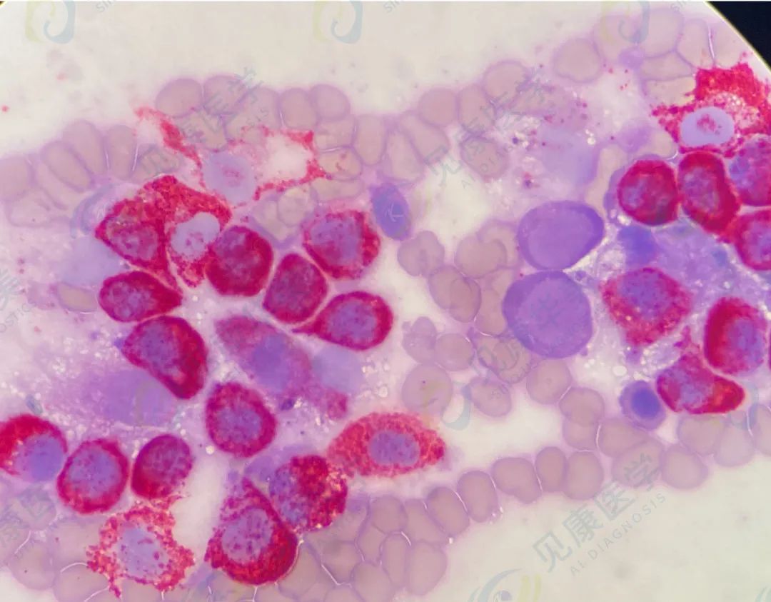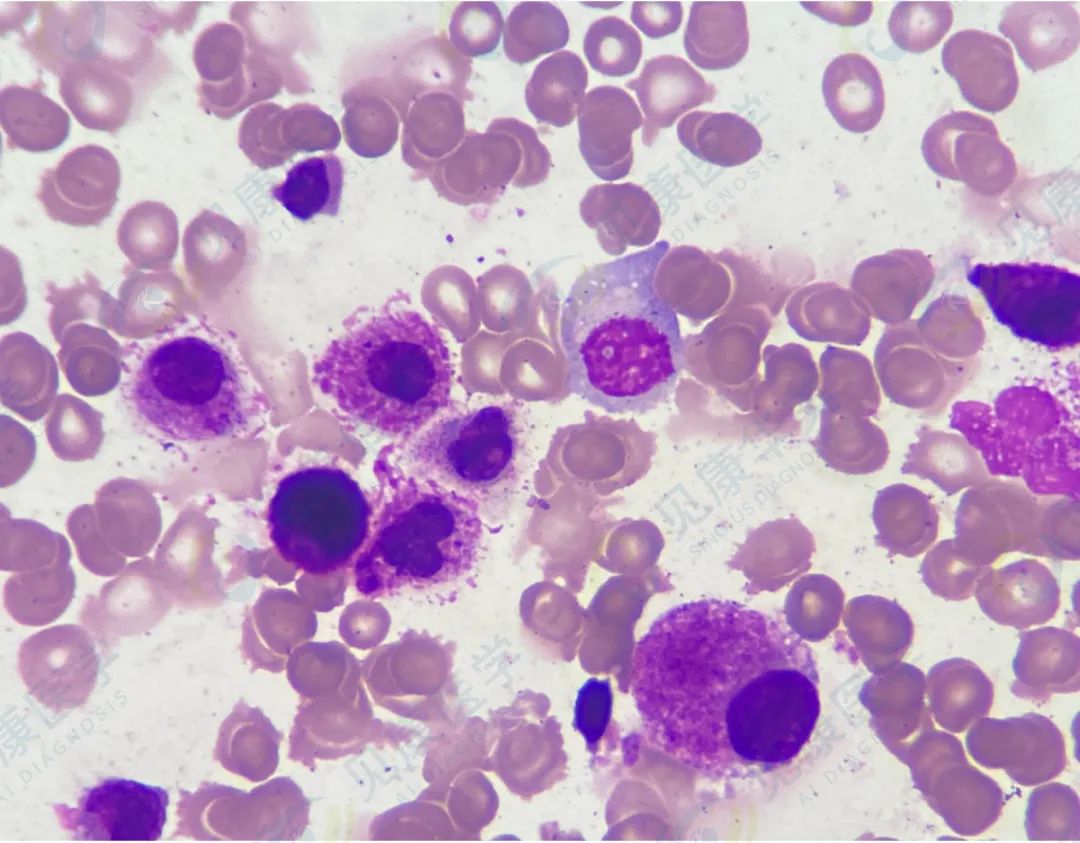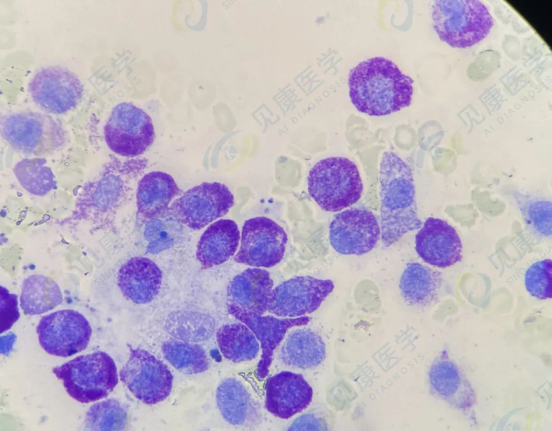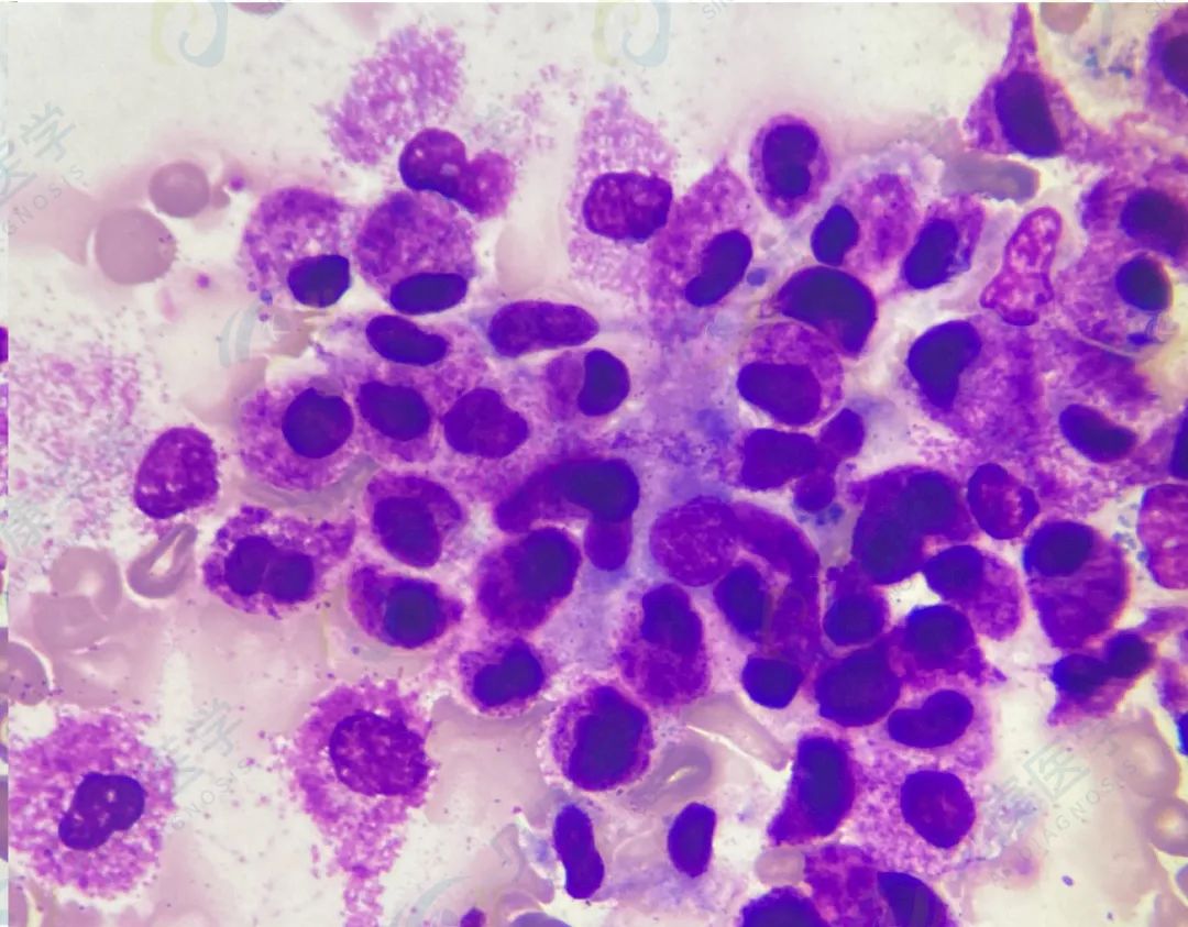 上述为骨髓涂片,外周血涂片该类细胞约1%