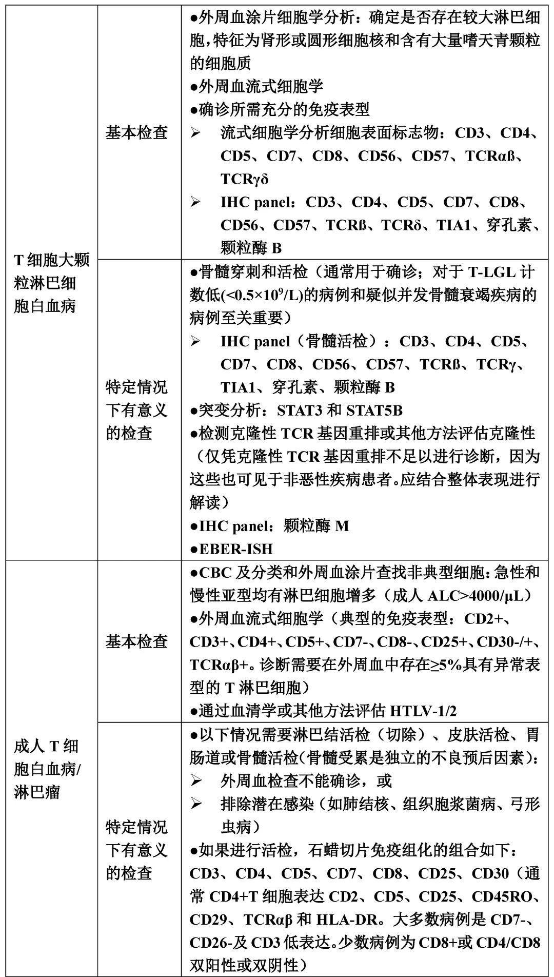 ●用于检测体细胞突变或遗传异常的基因检测,包括高通量测序(HTS)、微阵列比较基因组杂交技术 (CGH)、NGS、核型或FISH,通常可提供大量信息,某些情况下对于T细胞淋巴瘤精准诊断和预后评估必不可少。