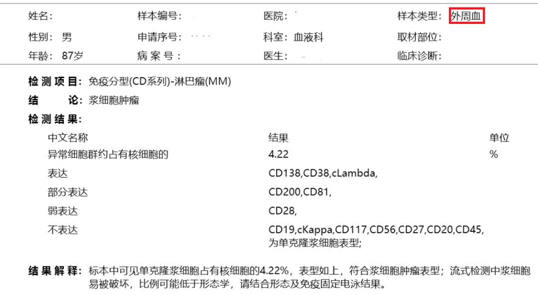 浆细胞肿瘤,考虑为多发性骨髓瘤,建议结合免疫固定电泳、骨髓流式细胞学、影像学、生化(肾功、血钙)等检查进一步明确。