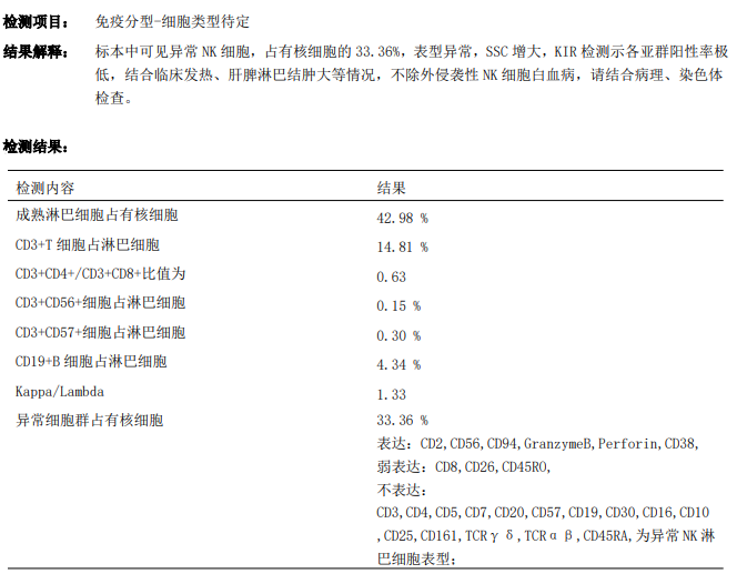 男,26岁, 发热,黄疸,肝、脾、淋巴结肿大。
