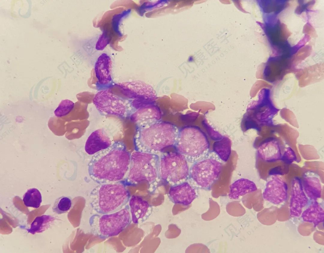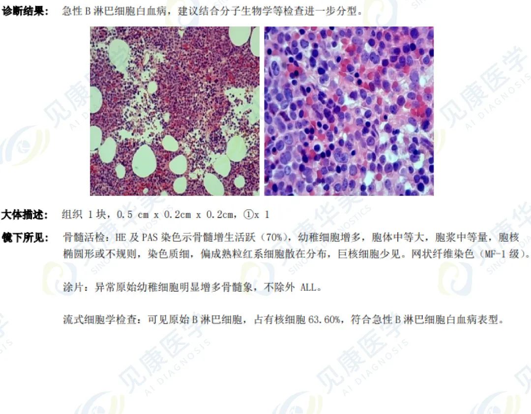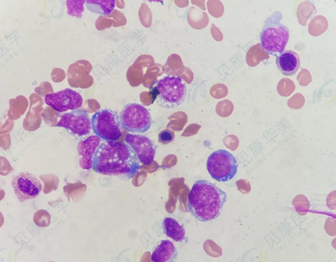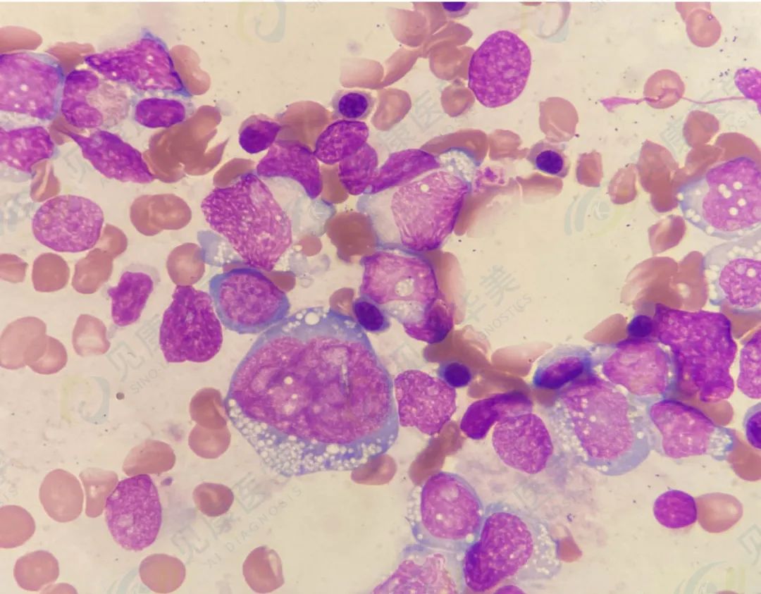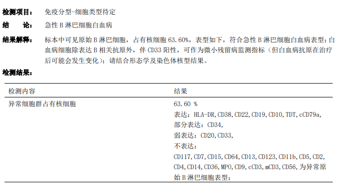 (说明:该病例异常细胞胞浆空泡明显增多,常见于ALL及Burkitt淋巴瘤,少见于大B细胞淋巴瘤及其他类型淋巴瘤。异常细胞明显大小不一致,可见巨大细胞,形态更符合淋巴瘤特征,但Burkitt淋巴瘤通常大小较一致,所以具有很强的迷惑性。流式细胞学为鉴别ALL及淋巴瘤的金标准,故综合诊断为ALL。)