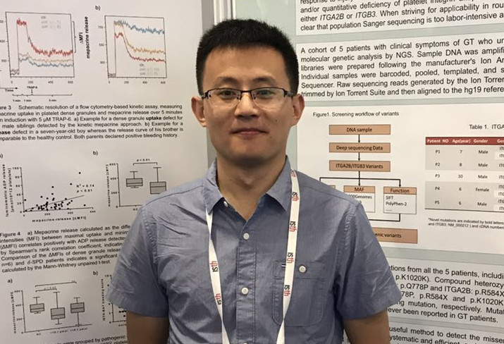 张冬雷博士在ISTH的罕见出血性疾病分会场做了《二代测序(NGS)技术在检测和分析血小板无力症患者基因突变中的应用》的壁报交流,对5例典型的血小板无力证患者进行了分析,通过NGS技术检测ITGA2B和ITGB3两个基因的致病突变,能够为临床提供有力的诊断支持。