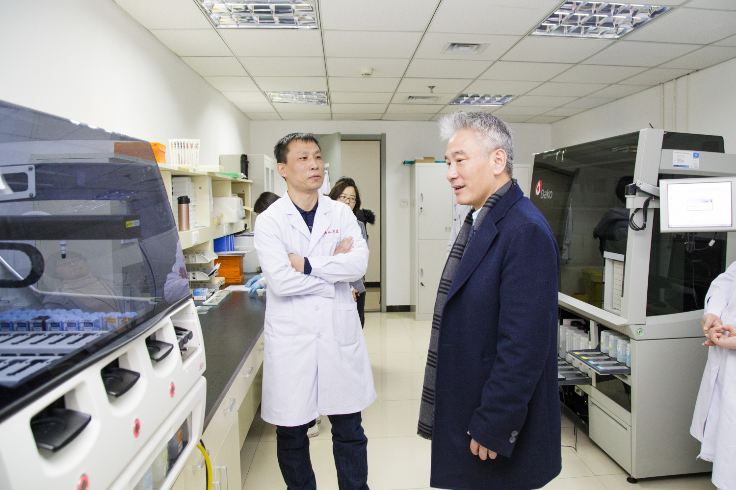 周敏教授依次参观了协和华美病理形态室、流式细胞室、细胞遗传室、分子生物室及研发室,并就实验室的工作流程、质控程序和人才培养等情况,与各实验室主任和骨干人员进行了深入交流。