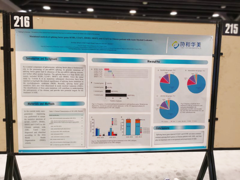 协和华美的专家蔺亚妮、邢飞所投递的论文被选为壁报展示,文章使用高通量测序技术的方法验证了5个剪接因子在急性白血病中的突变情况。