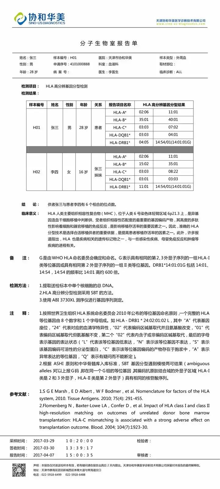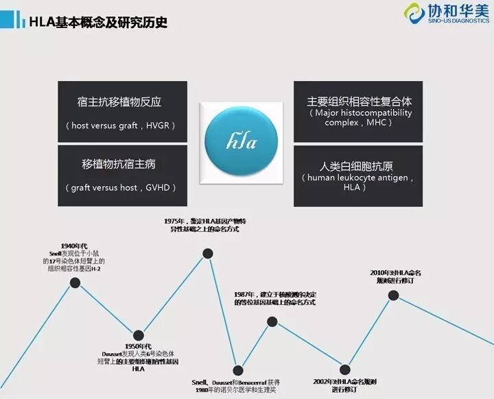 HLA是首先在白细胞上发现的人类的MHC抗原;是异基因造血干细胞移植中判断供、受者组织相容性匹配度的最重要的基因编码产物,其高度的多肽性影响着细胞和器官移植的免疫反应,是影响移植存活率的重要因素之一。