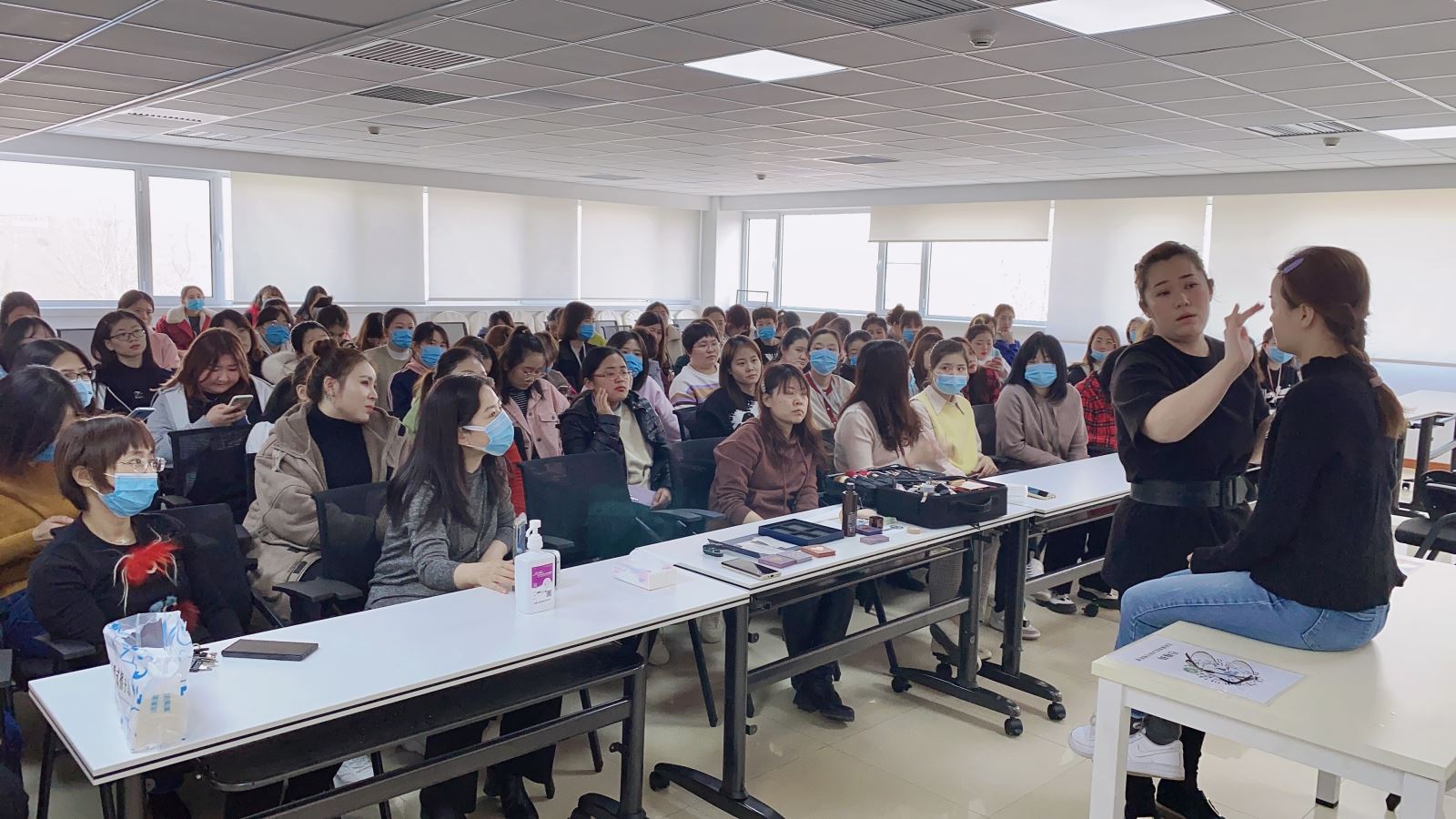 女神节当天,我们聘请了拥有16年从业经验的名堂彩妆首席化妆总监琳达老师,从底妆、眼妆、唇妆等几个方面为大家讲解化妆的基本步骤和要点,教大家如何利用早上有限的时间画出可以加分且好气色的职场妆。来自公司各部门共150多名女员工参加了此次培训。