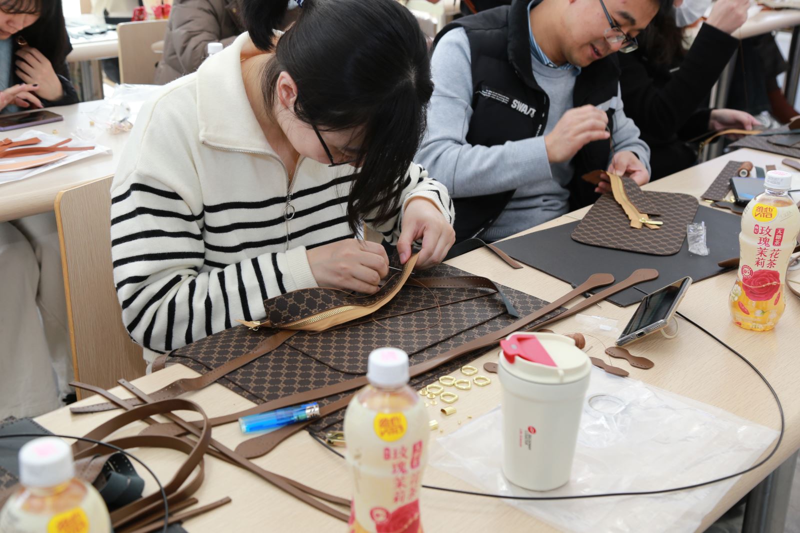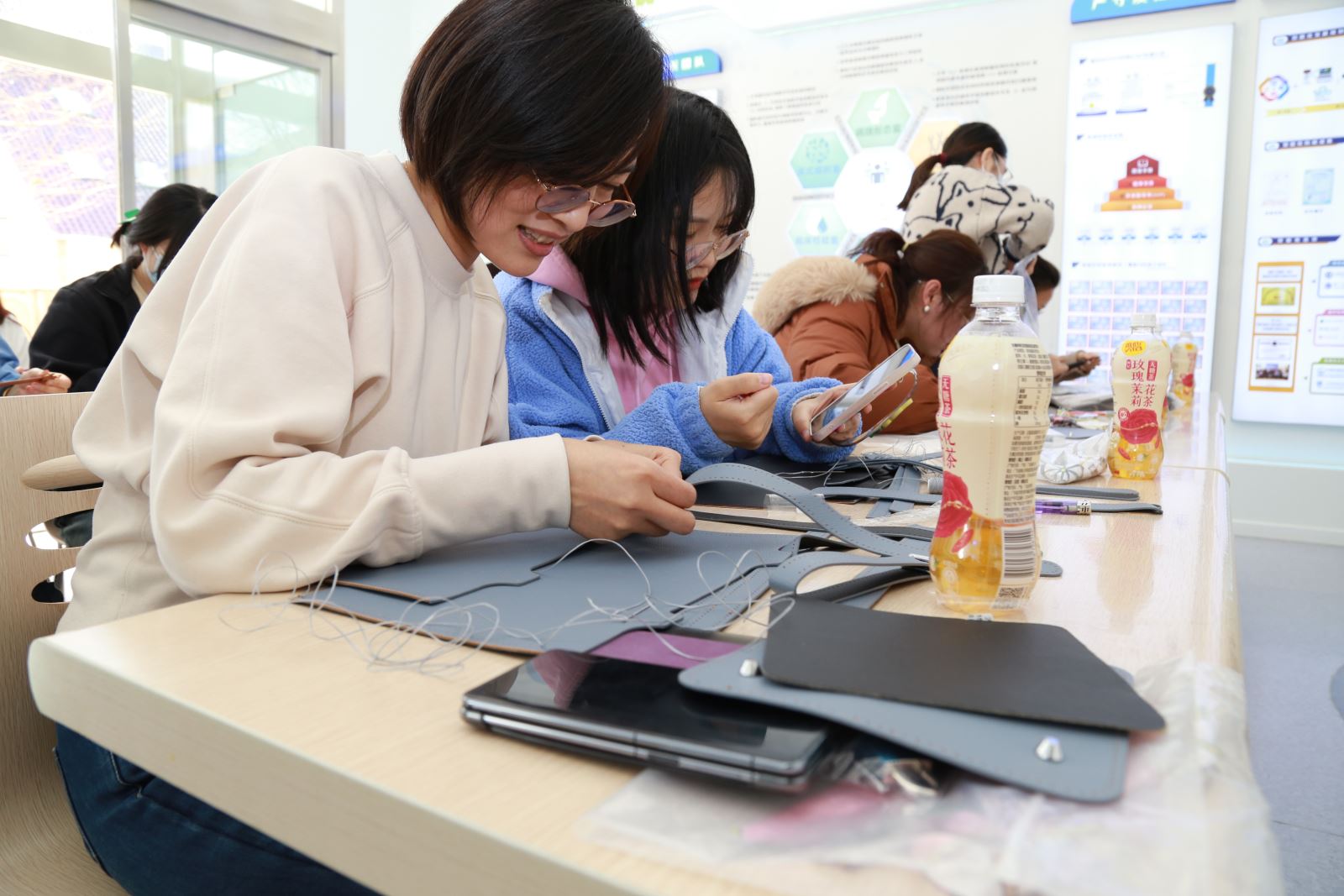 活动伊始,老师向大家包包制作技巧,并介绍手提包制作步骤的重点与难点,提醒注意事项。在老师的指导下,女职工们进入DIY动手制作环节。