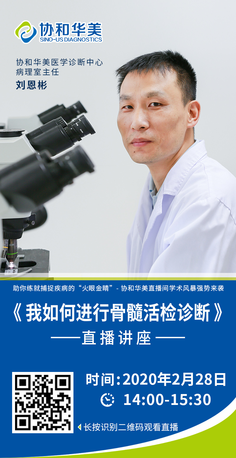 疫情防控的当下,思维不下线,学术交流不能停!我们特别为广大血液病理医生策划了本场网上实时直播。届时协和华美刘恩彬教授将用通俗易懂的语言就《我如何进行骨髓活检诊断》的课题进行全方位“解析”,由表及里,抽丝剥茧,重点阐述临床思路和诊断要点,一步一步给出最终答案,定会令您大饱眼福,口服心服!