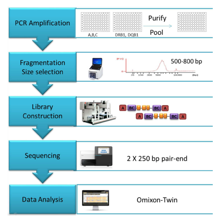 目前在实验室中进行HLA检测主要采取PCR-SBT方法,实验流程如下:▼