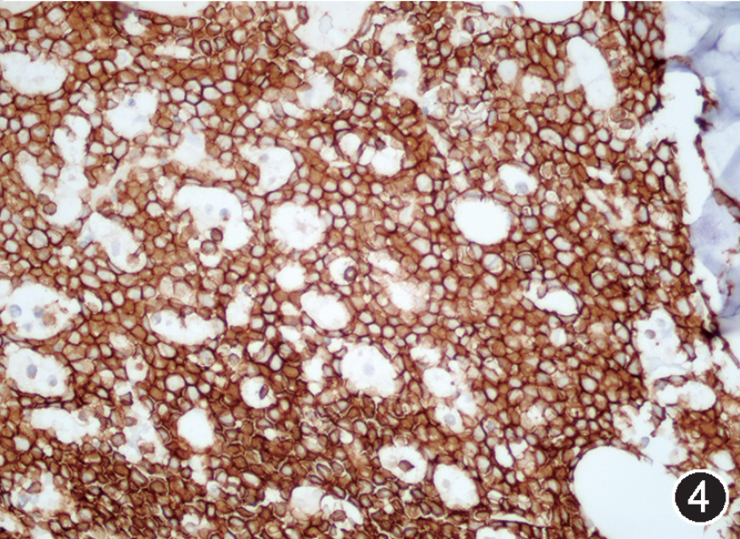 参考文献:刘恩彬, 孙丽丹, 张静芳, 等 . 以白血病为表现形式的高级别 B 细胞淋巴瘤[J]. 中华病理学杂志, 2022, 51(4): 389-392.