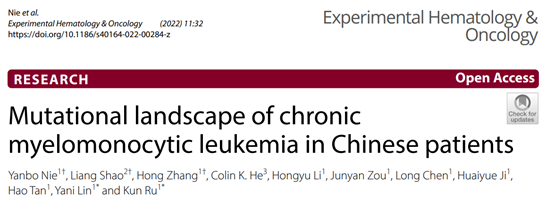 参考文献:Yanbo Nie, Liang Shao, Hong Zhang, et al. Mutational landscape of chronic myelomonocytic leukemia in Chinese patients. Exp Hematol Oncol. 2022 May 24;11(1):32.