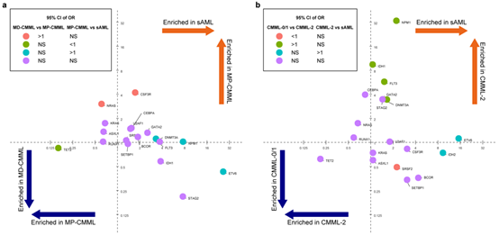 图3. CMML疾病亚型与sAML中的驱动突变分析
