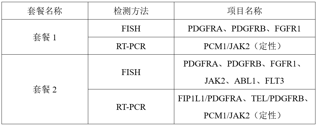 ① 嗜酸粒细胞克隆性增多检测套餐1、2