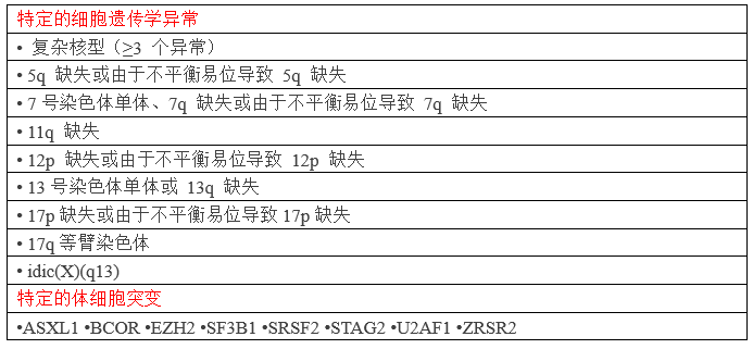 表8. 定义AML-MR的细胞遗传学和分子异常