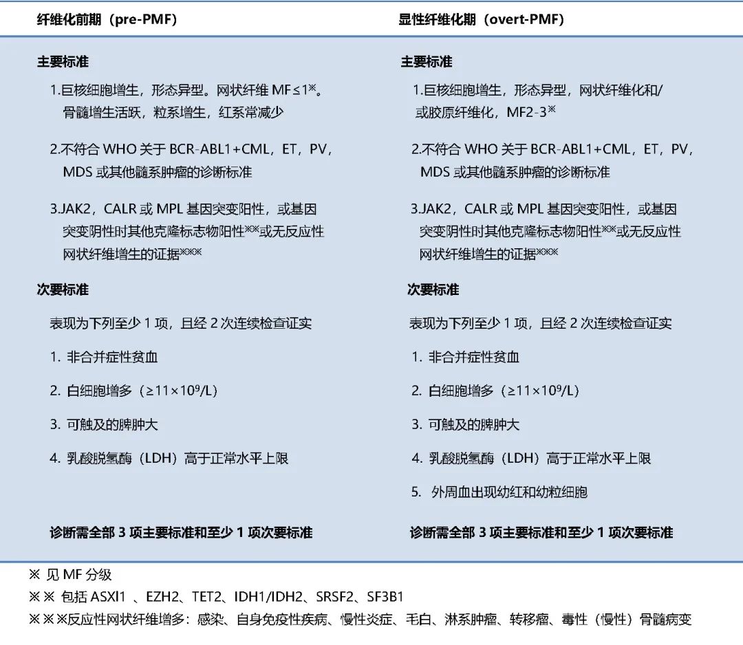 表1.PMF的诊断标准(WHO,2016)
