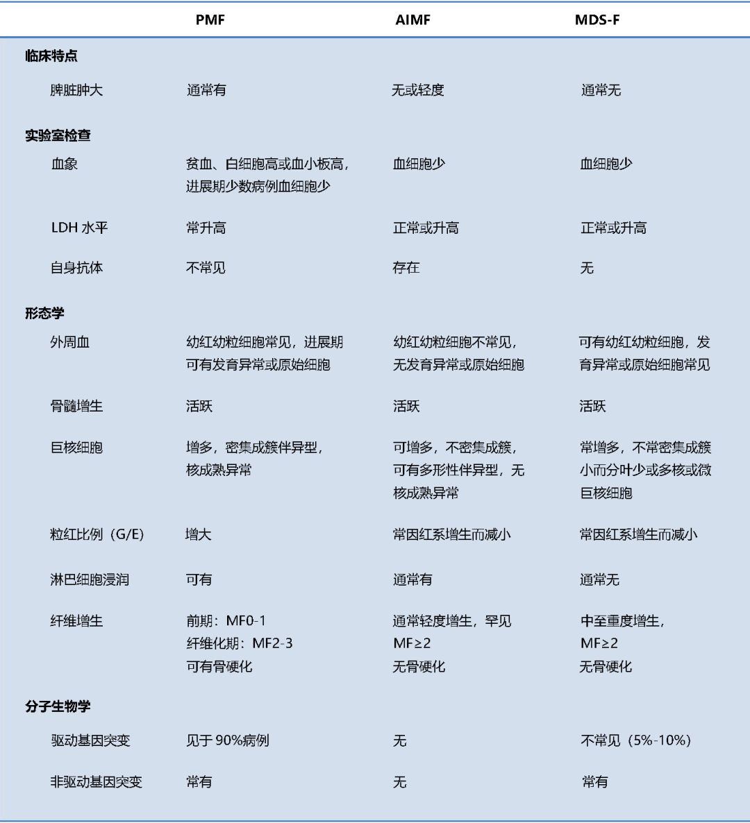(二)如何区分 PMF 和 MDS-F?(表3)