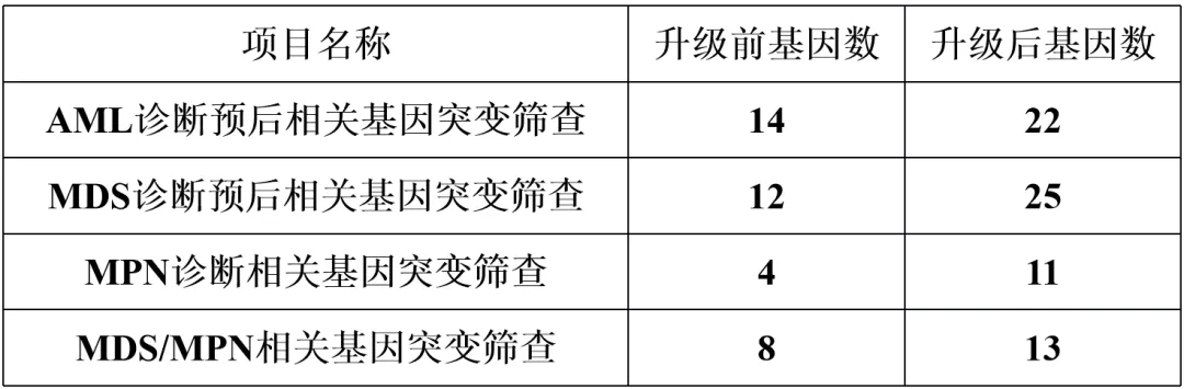 由8基因升级为13个基因,新增5个基因CALR、CSF3R、JAK2、MPL、CBL。