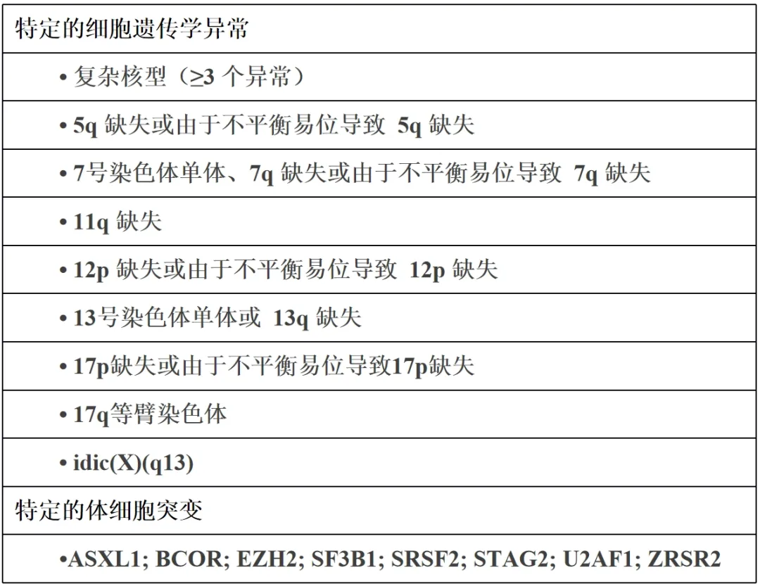 表2. 定义 AML-MR 的细胞遗传学和基因突变异常