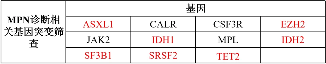 2022版ICC指南和最新版NCCN指南均将ASXL1, EZH2, IDH1, IDH2, SF3B1, SRSF2, TET2等基因突变的克隆性证据作为诊断原发性骨髓纤维化的主要标准。升级后的MPN项目纳入了以上克隆性标志的基因,可以更好的辅助MPN的诊断。