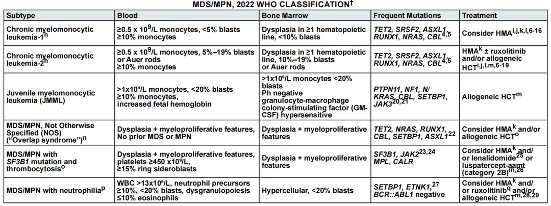 图1. NCCN指南中MDS/MPN 2022版WHO分类