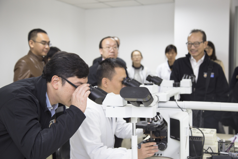 10月24日下午,北加州大学校长Alvin Cheung教授携北加州大学医学院的14位教授先后来到中国医学科学院血液病医院、团泊新城健康产业园区进行参观,随后到访协和华美,参观了协和华美公司的几大中心实验室。