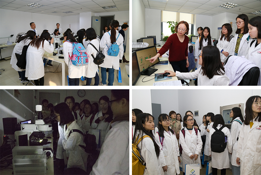 协和华美首先向同学们介绍了公司的快速发展情况、部门设置、人才培养,随后各学科带头人带领学生们参观了病理形态学、流式细胞学、遗传学和分子生物学等中心实验室。