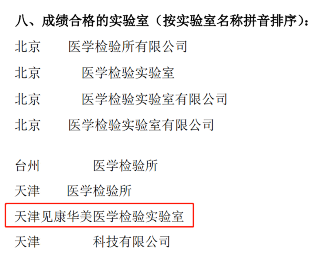 表1. 见康华美实验室顺利通过的室间质评项目列表
