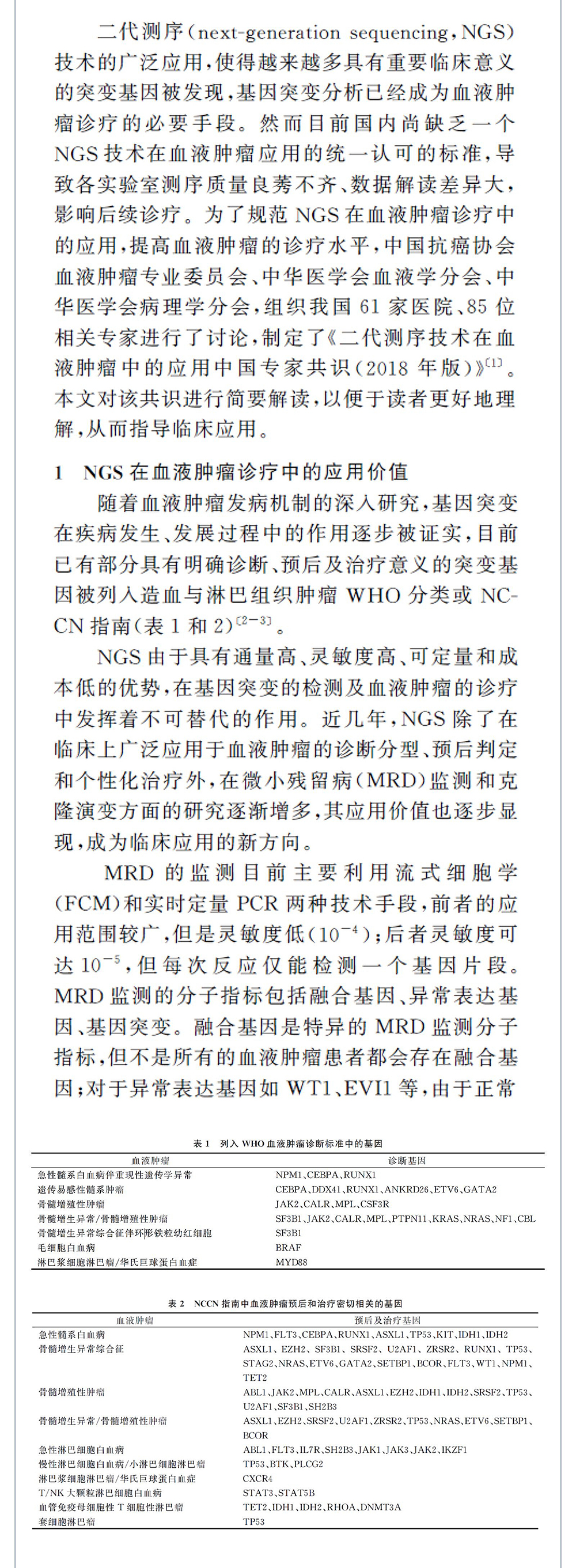 【干货分享】《二代测序技术在血液肿瘤中的应用中国专家共识(2018年版)》解读