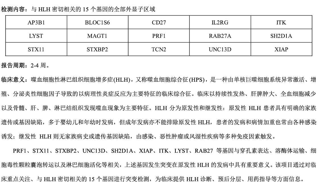 噬血细胞性淋巴组织细胞增多症(HLH)基因突变检测
