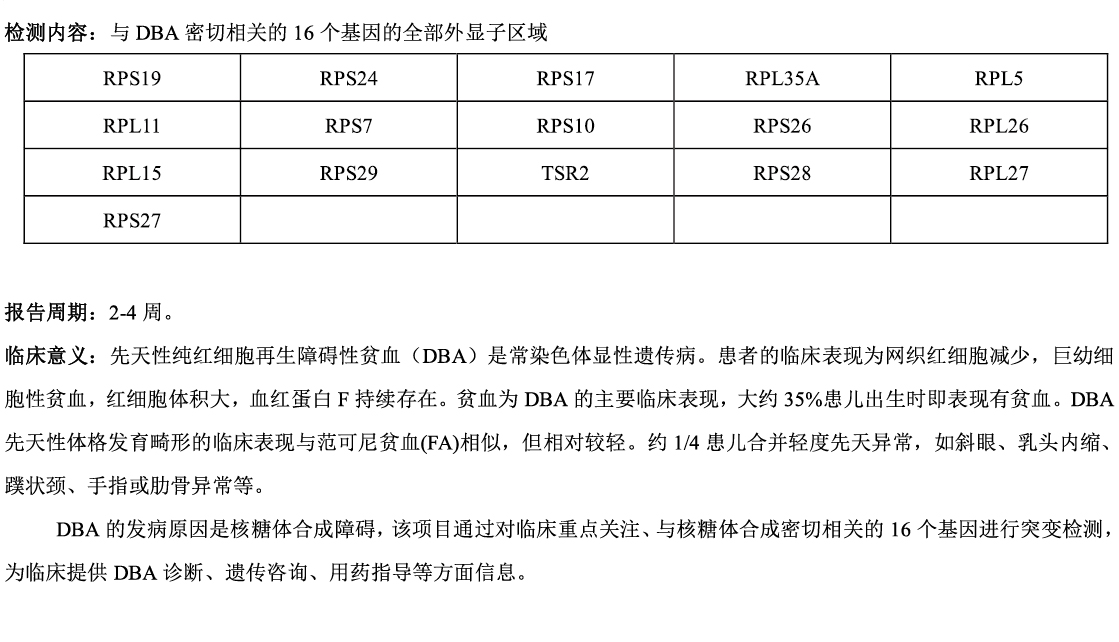 先天性纯红细胞再生障碍性贫血(DBA)基因突变检测