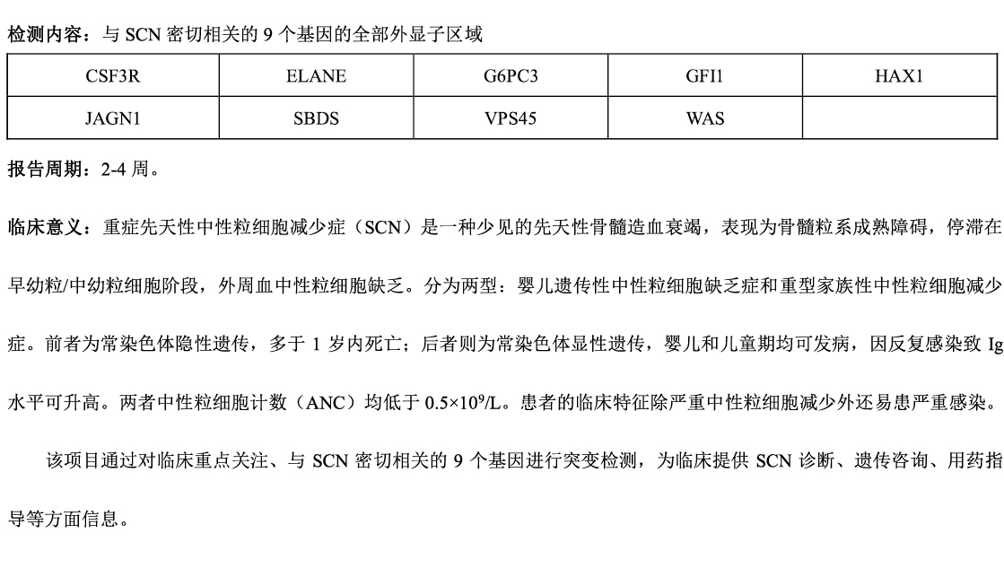 重症先天性中性粒细胞减少症(SCN)基因突变检测
