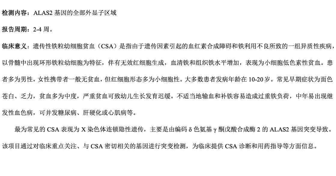 遗传性铁粒幼细胞贫血(CSA)基因突变检测