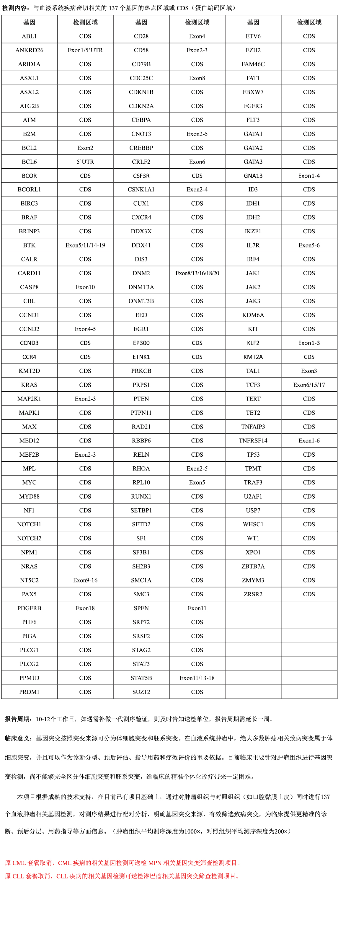 血液系统疾病基因突变筛查全套(肿瘤组织+对照组织)