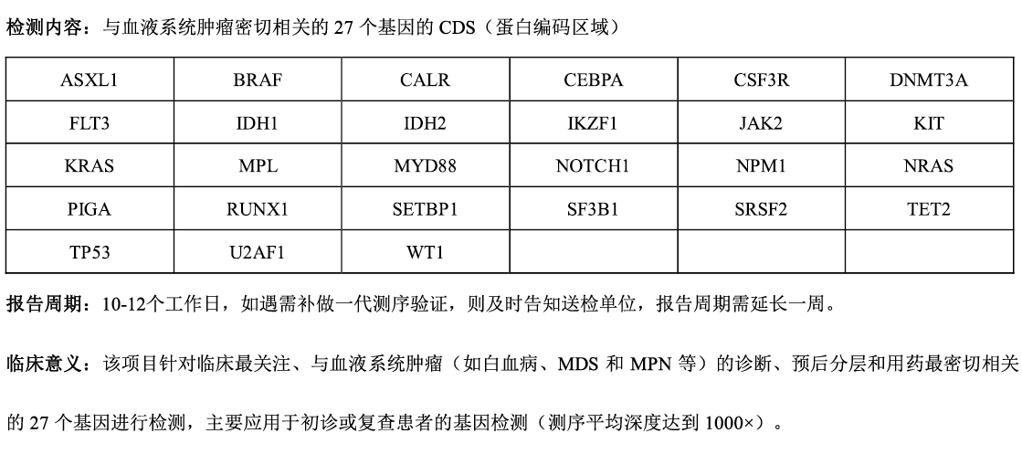 血液系统疾病基因突变筛查全套(肿瘤组织+对照组织)